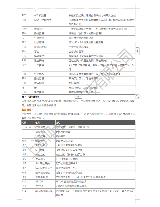 這些錯(cuò)誤信息可通過(guò)ASCII命令取消,除非執(zhí)行復(fù)位。當(dāng)這些錯(cuò)誤顯現(xiàn)時(shí),復(fù)位按鈕或I∕O功能復(fù)位被使用,消除錯(cuò)誤的命令都會(huì)被執(zhí)行