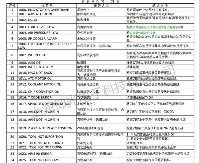 FANA發(fā)那科維護(hù)常見故障報(bào)警代碼:FANUC發(fā)那科系統(tǒng)報(bào)警碼:911,912,913,914,915,916,917,918,918,919,920,921,922,926,930,935,940,941,945,946,950,951,960,970,912,972,973,974,975,976,998,9001,9002,9003,9004,9005,9006,9007,9008,9009,9010,9011,9012,9013,9014,9015,9016;