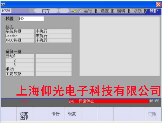 4.選擇完裝置后,按下“備份”→“INPUT”→“Y”,此時(shí)屏幕顯示“備份執(zhí)行中”。