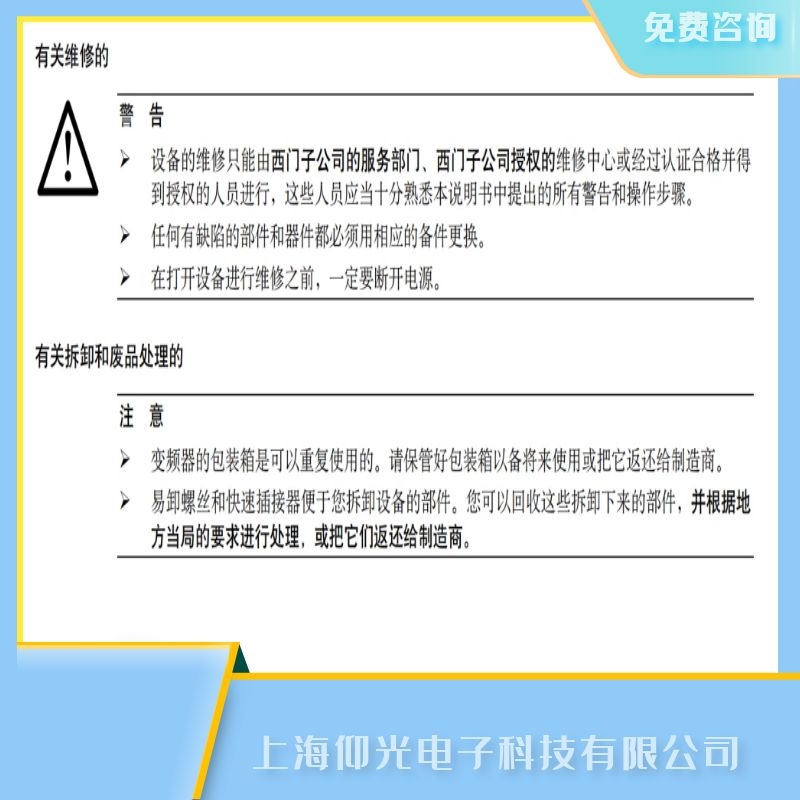 上海西門子系列變頻器有關(guān)維修的警告及維修公司電話